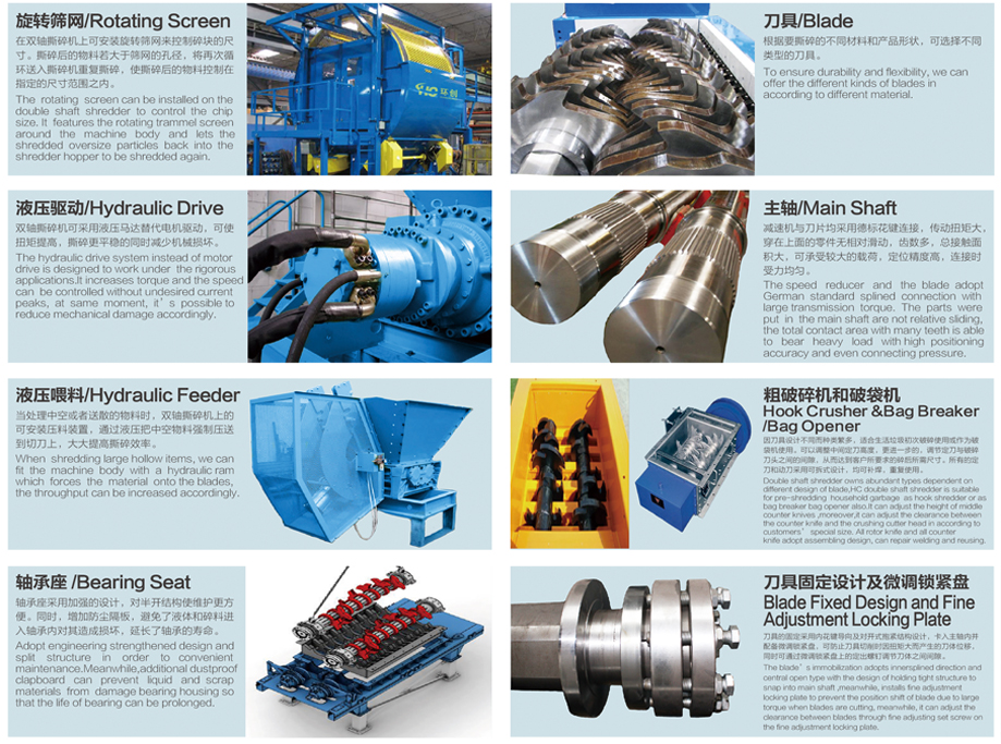 環(huán)創(chuàng)DS系列雙軸撕碎機(jī)可滿(mǎn)足各行業(yè)的廢料回收要求,適合撕碎較厚難碎的物料如:電子垃圾、硬質(zhì)塑料、金屬、木材、廢舊橡膠、包裝桶、托板等?苫厥詹牧戏N類(lèi)繁多,經(jīng)撕碎后的物料可直接回收或根據(jù)需求作進(jìn)一步細(xì)化處理。適用于工業(yè)廢棄物回收、醫(yī)療回收、電子制造、托板制造、木材加工、生活垃圾回收、塑料回收、輪胎回收、造紙等行業(yè)的應(yīng)用。該系列雙軸撕碎機(jī)擁有低速、大扭矩、低噪音等特點(diǎn),采用西門(mén)子編程系統(tǒng),可以自動(dòng)控制、設(shè)有啟動(dòng)、停止、反轉(zhuǎn)以及超載自動(dòng)反轉(zhuǎn)控制功能。