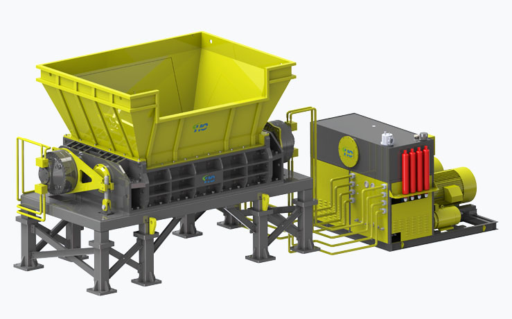 環(huán)創(chuàng)破袋機(jī)(粗破碎機(jī)),低轉(zhuǎn)速,大扭矩,用于破碎生活垃圾、大件垃圾、工業(yè)垃圾、廢舊木材等,將大件的垃圾破碎成200*250mm的碎塊,廣泛用于垃圾衍生物料生產(chǎn)和垃圾焚燒發(fā)電等領(lǐng)域的初步破碎,處理量大,維護(hù)成本低,可靠性好。整套設(shè)備包括電機(jī)、減速機(jī)、兩組刀片軸、料斗、支架、PLC控制柜等組成。它通過(guò)兩組動(dòng)刀軸相向旋轉(zhuǎn),與定刀合力剪切、撕扯、擠壓來(lái)減小物料的尺寸。該機(jī)型處理量極大,每小時(shí)處理量從10噸到100噸可選。物料的碎后粒徑200*250mm。