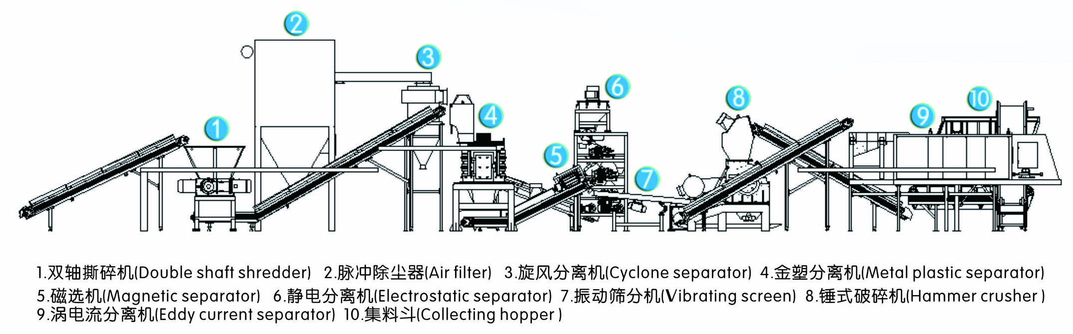 A typical PCB recycling plant would include the following components: